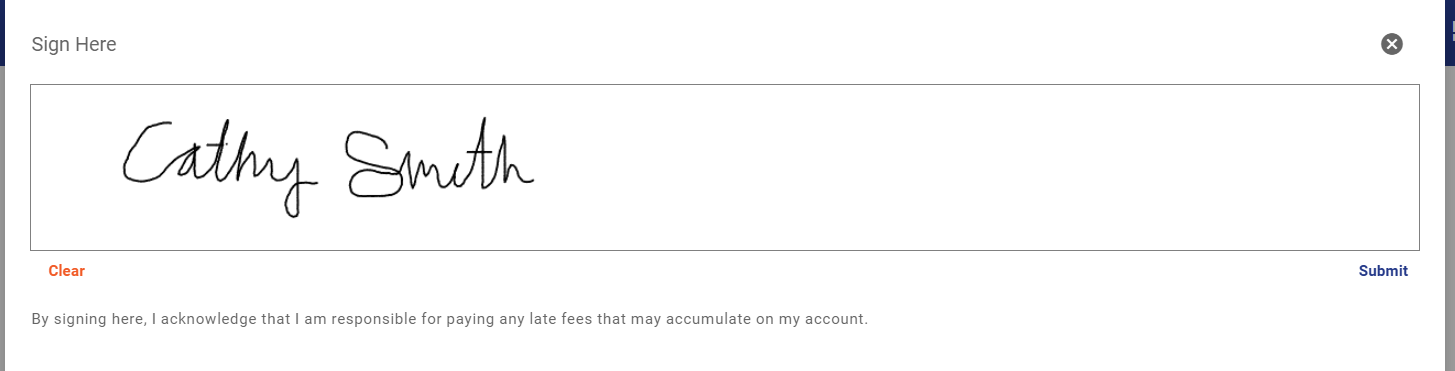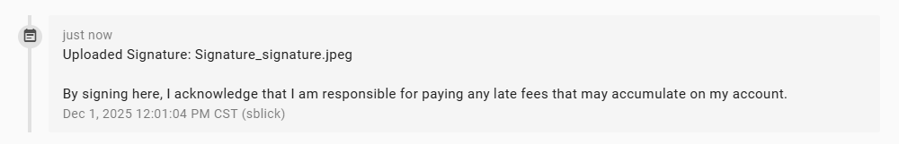 Acknowledging a late fee