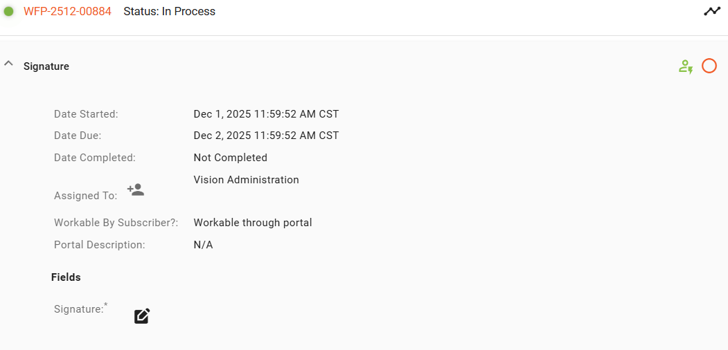 The Signature Task Field is a new feature that makes it easy to collect handwritten signatures inside any workflow. Whether a subscriber is signing from home, a technician is collecting a signature in person, or a subscriber needs to sign during an online form (outside of the shopping cart), the Signature field provides a simple, paper-free way to capture approval.