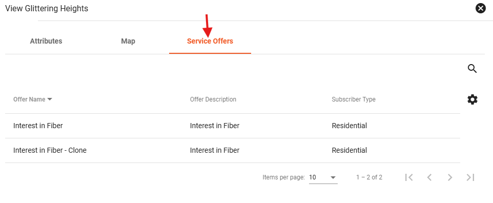 The Service Offers page allows administrators to view, edit and add available offers. Offers can be setup to capture interest areas for new service expansions in addition to current operational service areas.