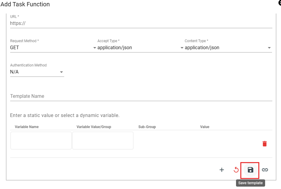 When using the webhook task field in Vision, you have the option to save it as a template.