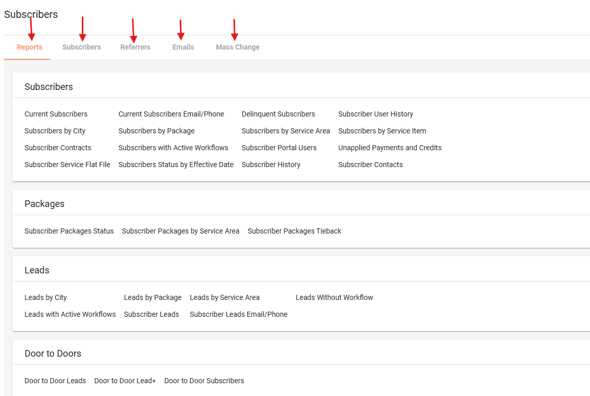 This is where you'll find various subscriber reports.