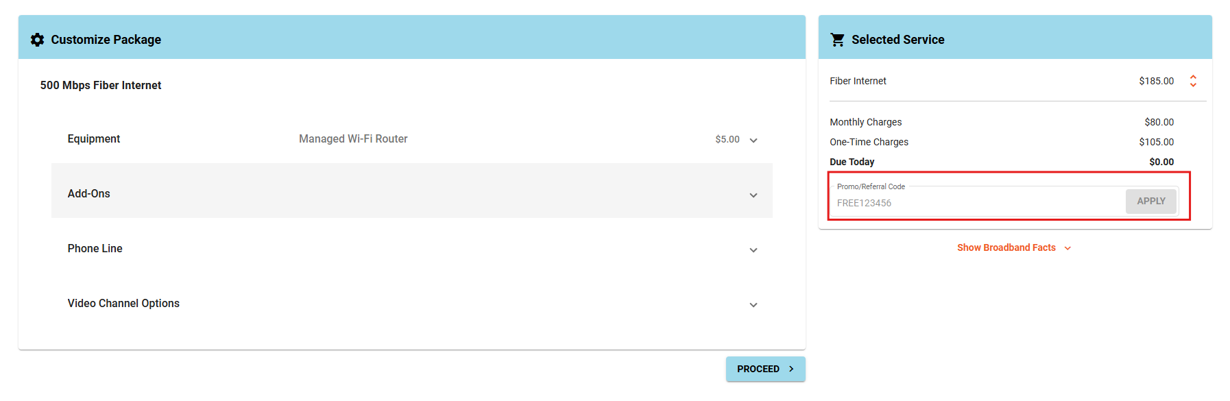 Two-step process: customer selects a base speed, then selects add-ons
