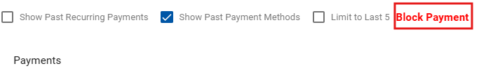 On the user portal, if a payment type is blocked, it won't appear as a payment option. If the subscriber already has a saved payment method of the blocked type, it will show up but be greyed out.